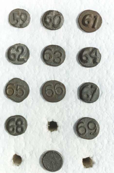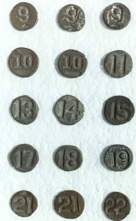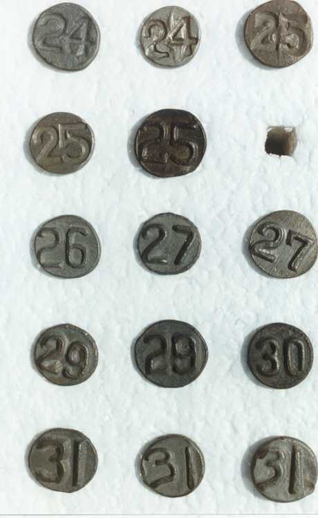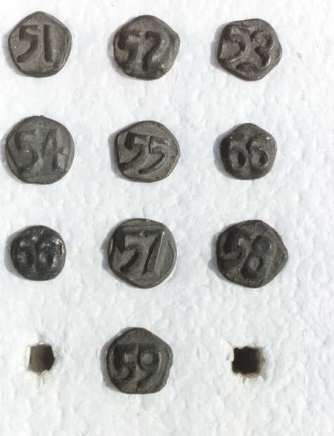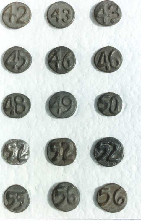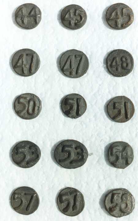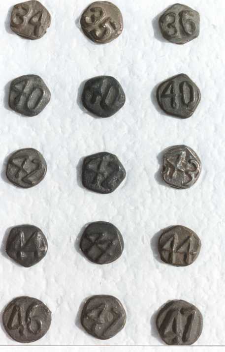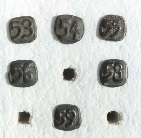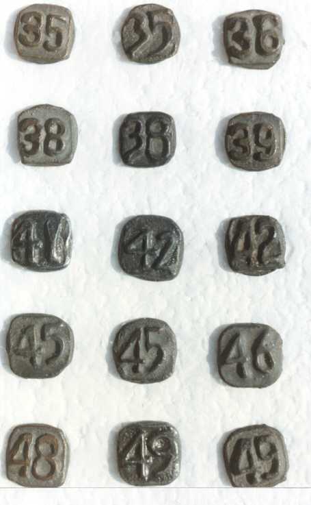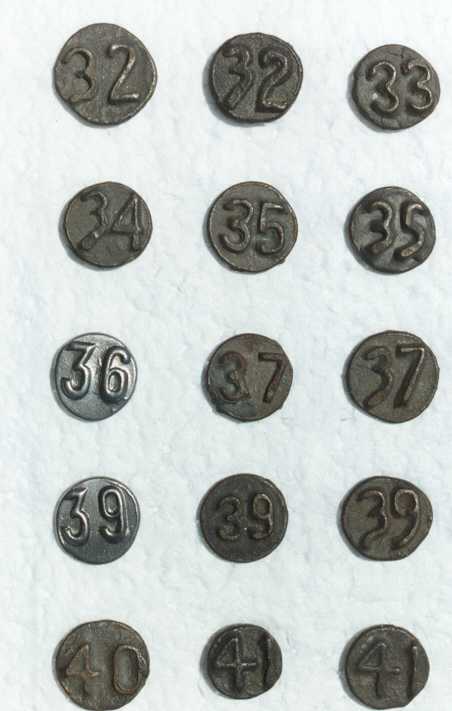 15 diamond/square date nails numbered 4-14 (diamond for singe digits, square for double digits)