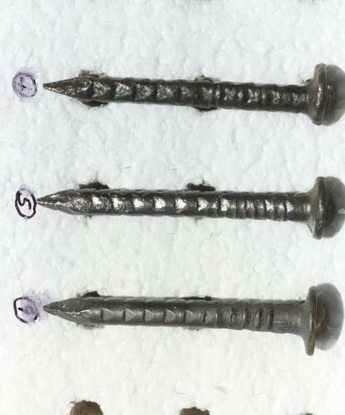 George Oliva took these photos of nails in ties on the U.S. Navy track in New Jersey: