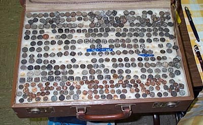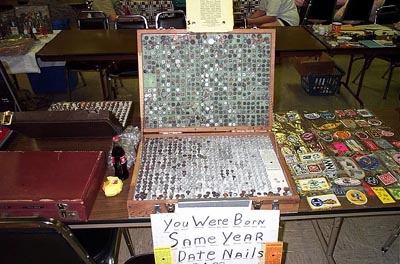 Here is a photo, taken by Wes Hodges, from the March 23-24, 2001 show in Shelbyville, KY. It is of Don Blake's marvelous display of type nails. What you see is only half of it!: