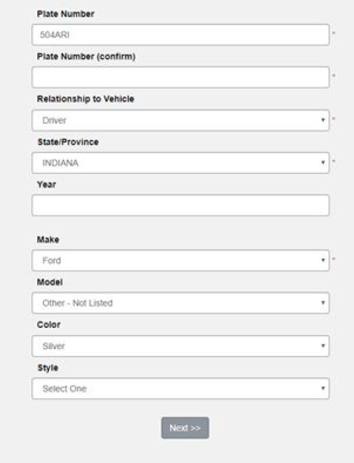 - Make the appropriate corrections on an existing vehicle or complete the required fields for entering a new vehicle. Click Next.